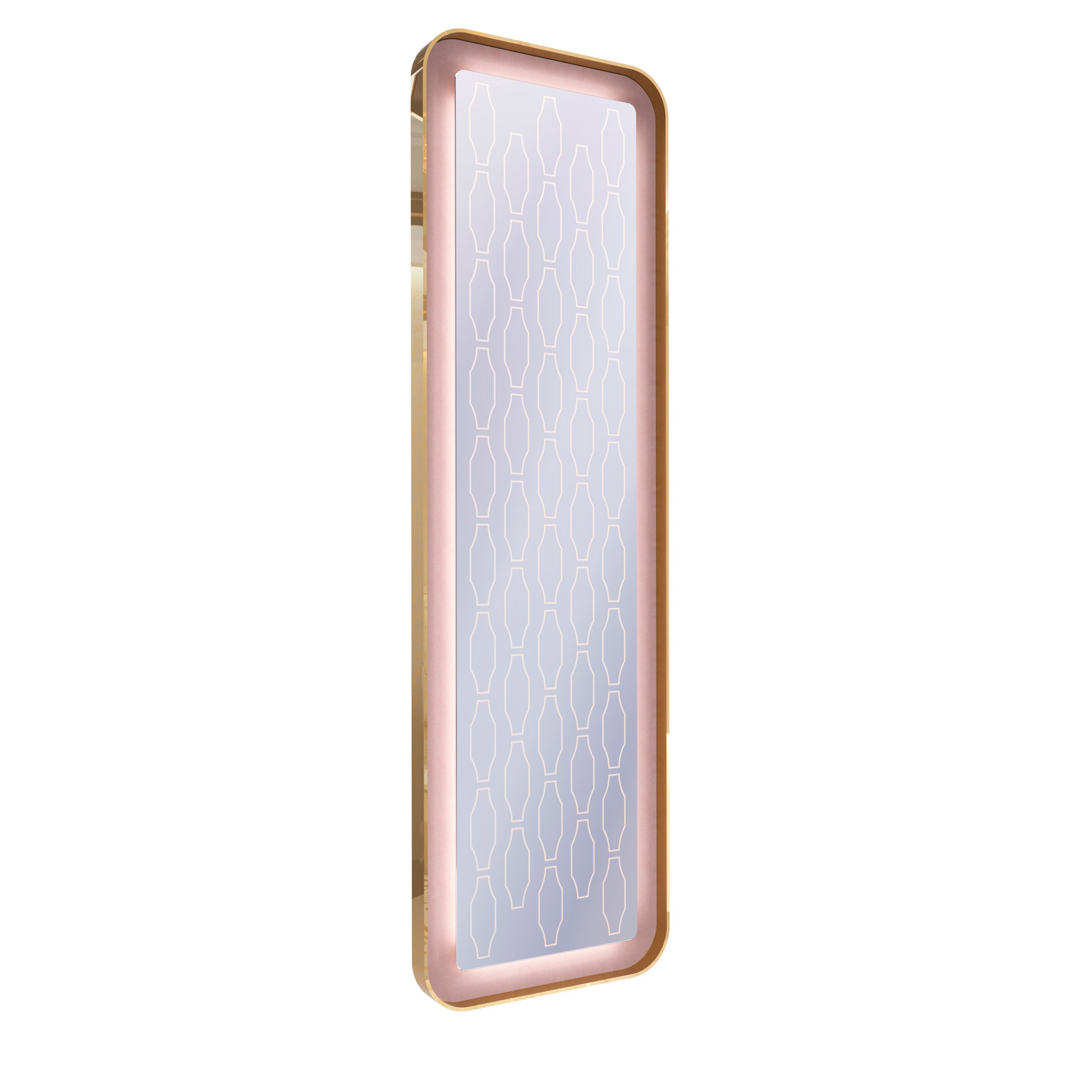 Sandblasted mirror with metal structure, fabric, LED lighting.