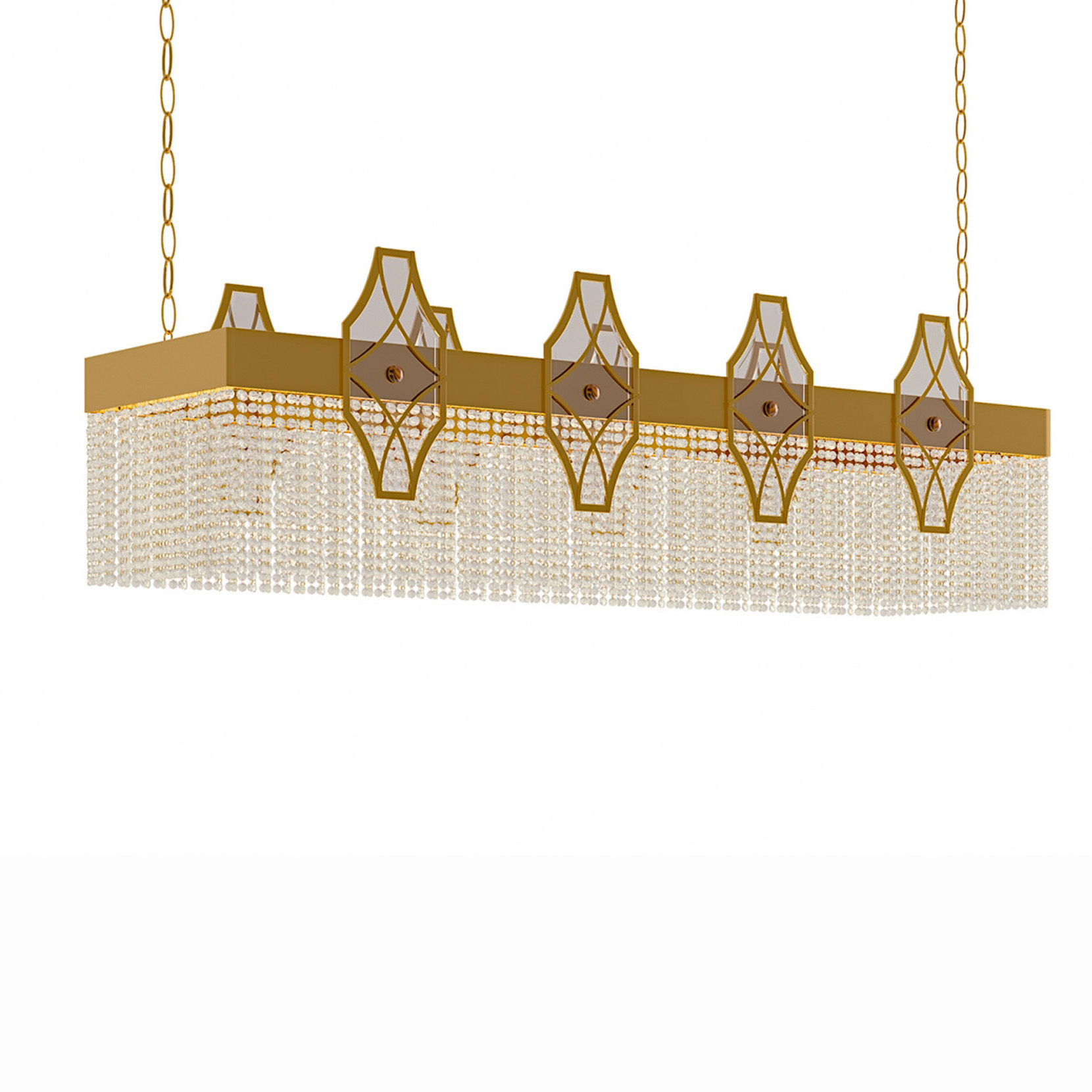 Chandelier in 24k GOLD plated metal frame,glass, Asfour crystals, tiger eye gemstones, LED lighting