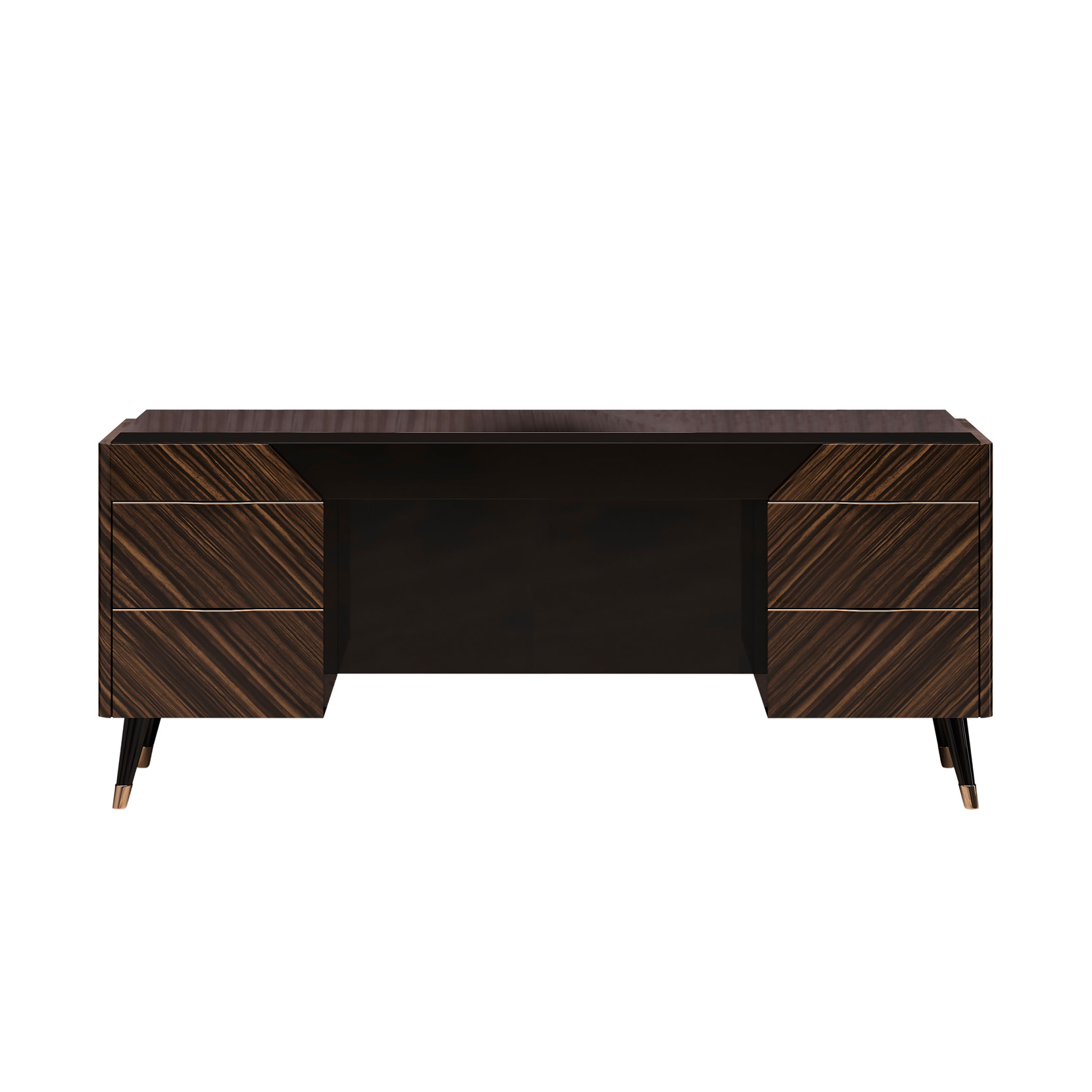 5-drawer make-up table with ebony veneer, matt lacquered parts, metal elements.