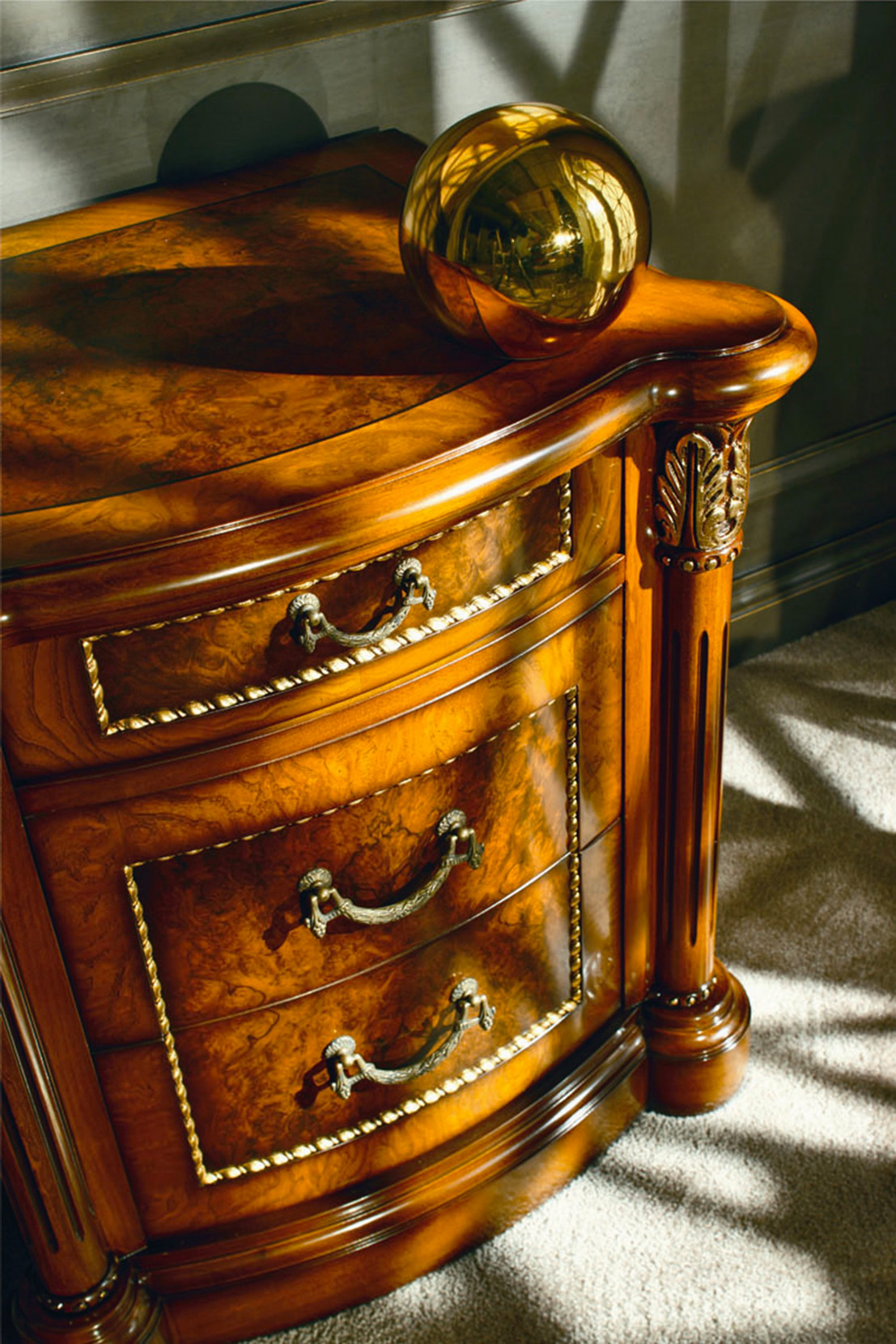 Nightstand veneere in Ash burl and walnut burl