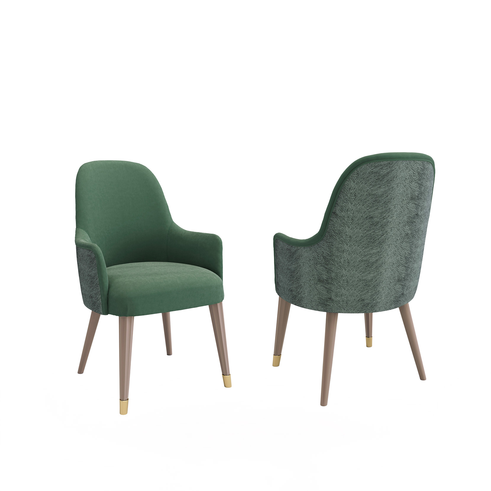 Chair with armrests, matt lacquered legs, fabric upholstery.