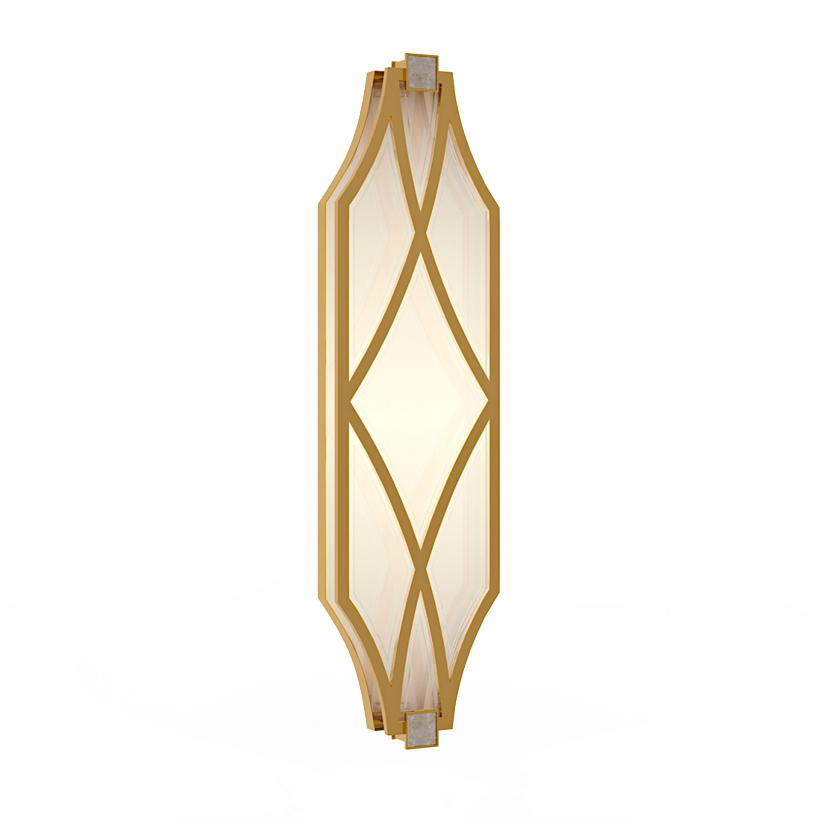 Applique in 24k gold-plated metal frame, glass, mother-of-pearl details, LED lighting.