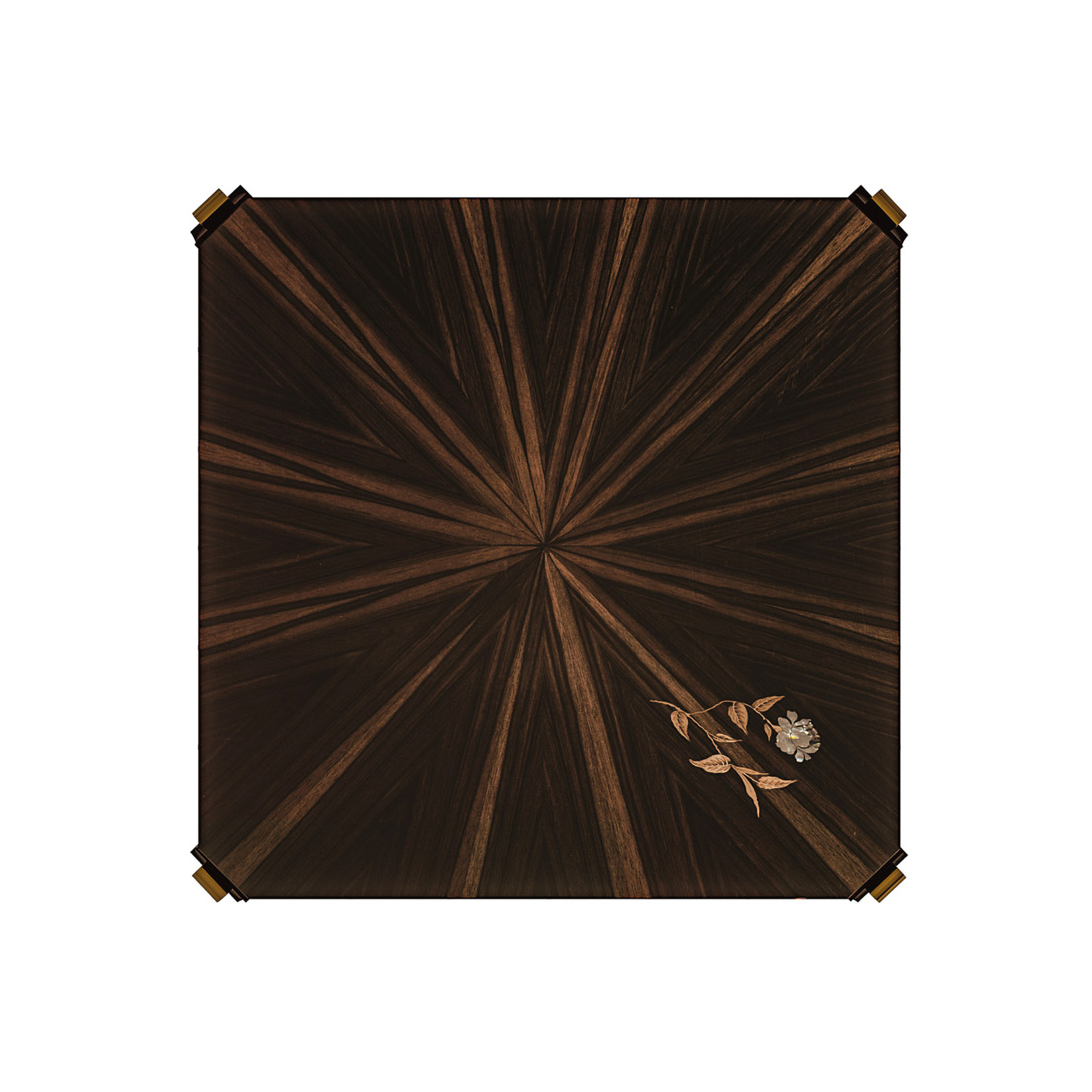 Square side table, top veneered in Macassar ebony, mother of pearl, brass, metal elements