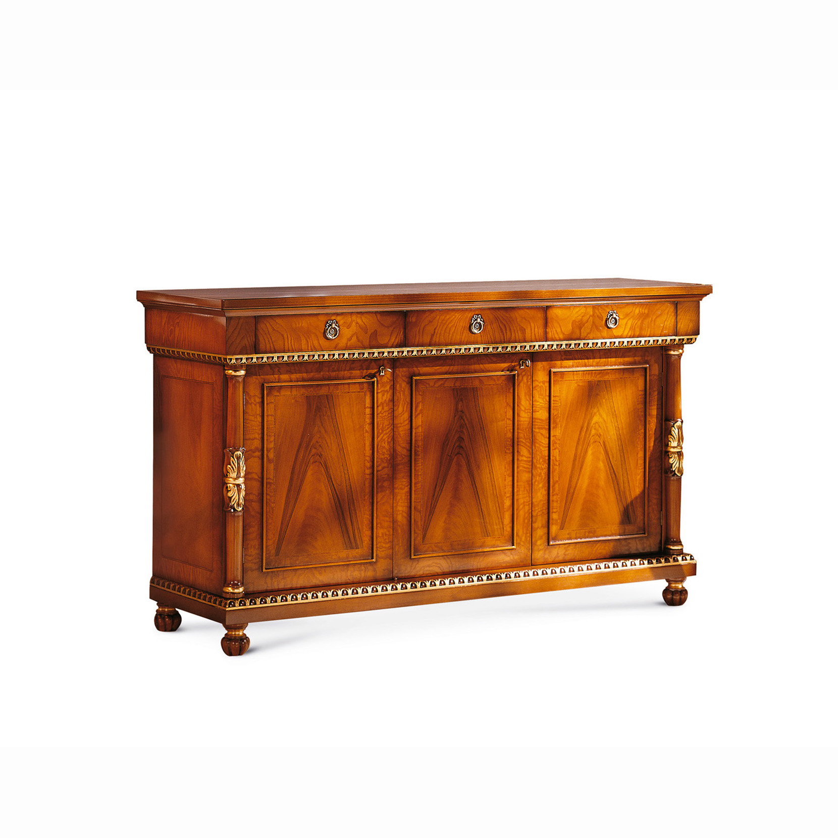 Sideboard with 3 doors and 3 drawer, veneered in walnut feather and ash burl