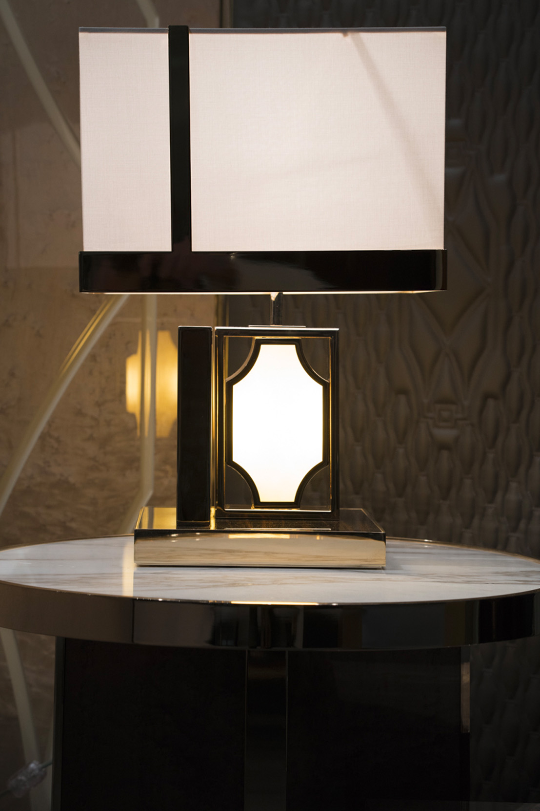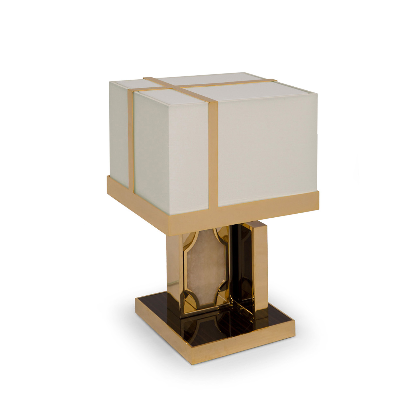 Table lamp in 24k GOLD plated metal frame, onix and Macassar Ebony, LED lighting