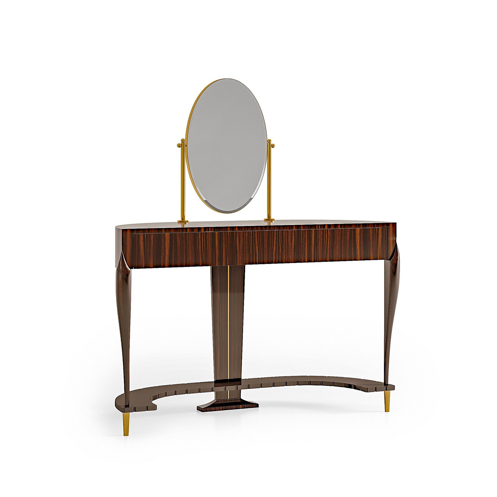Make-up table veneered in Macassar Ebony, brass, metal elements