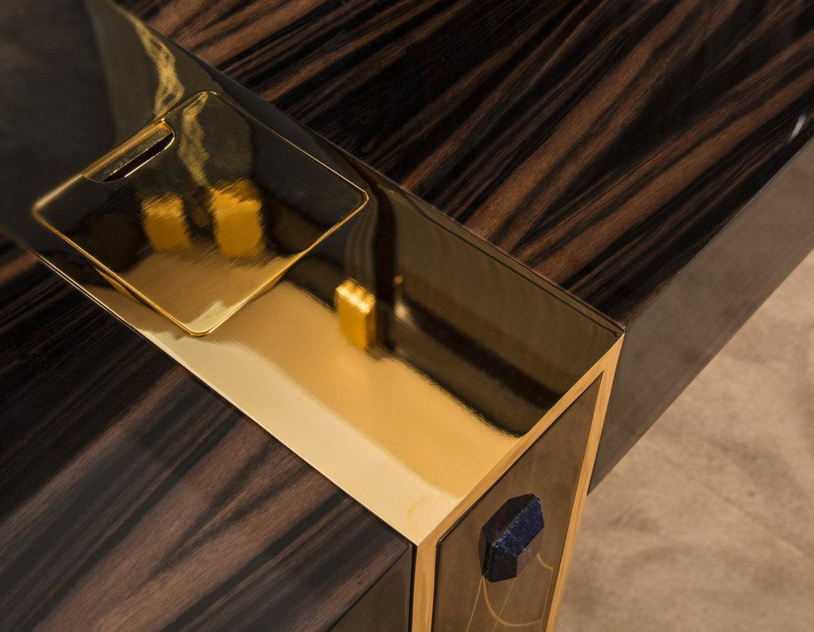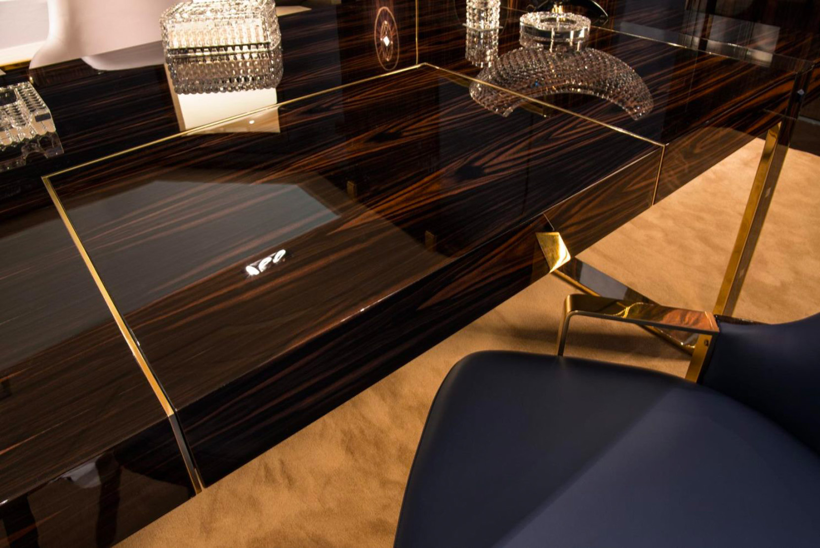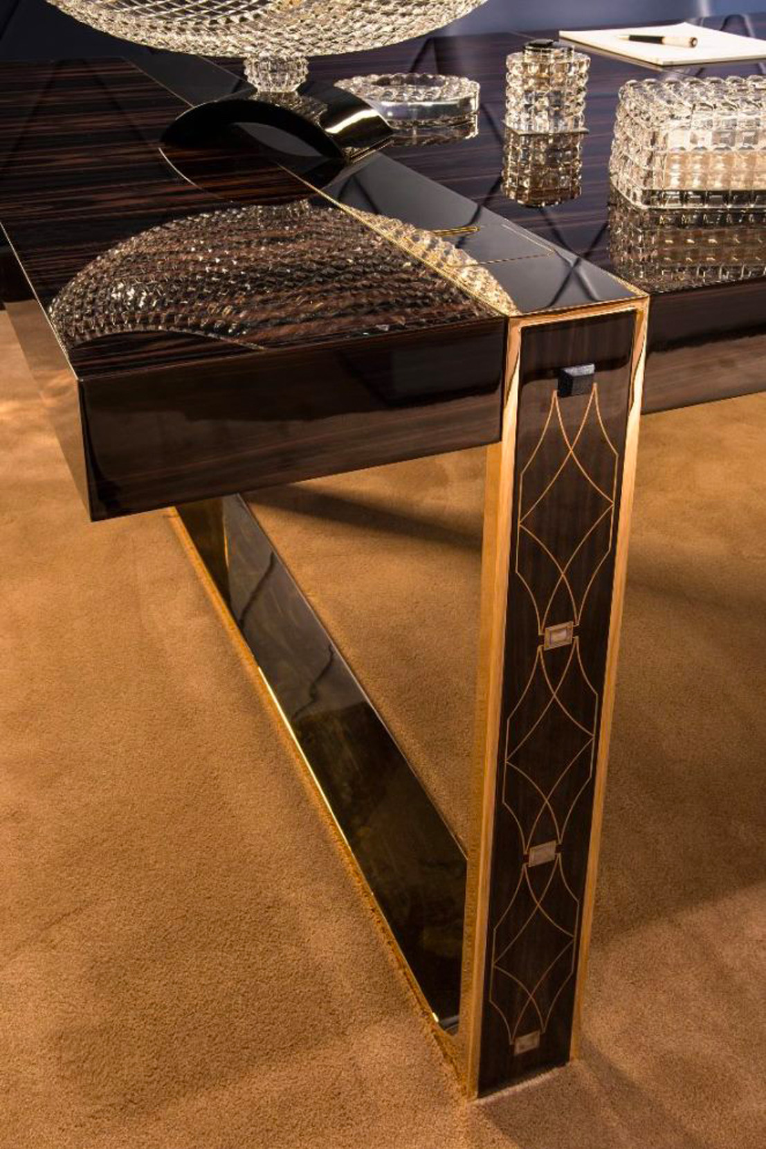 Desk veneered in Macassar Ebony, mother of pearl, brass, metal elements