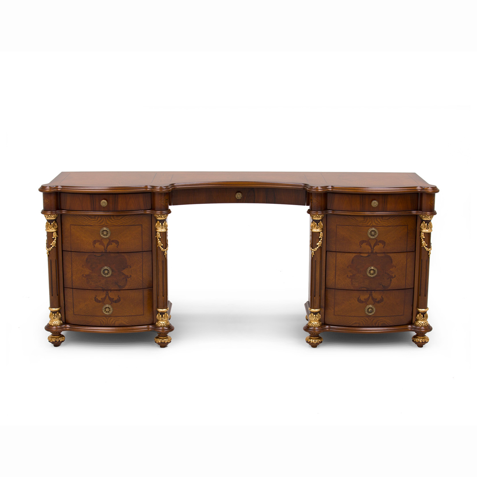 Make-up table veneered in ash feather, rosewood and walnut bur