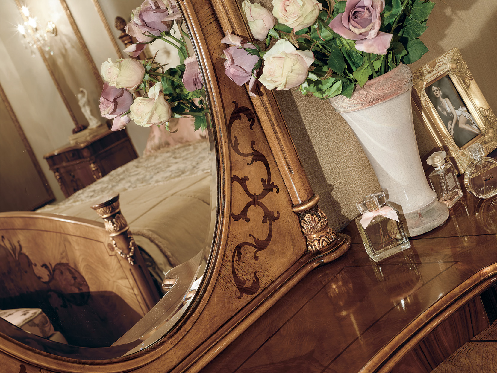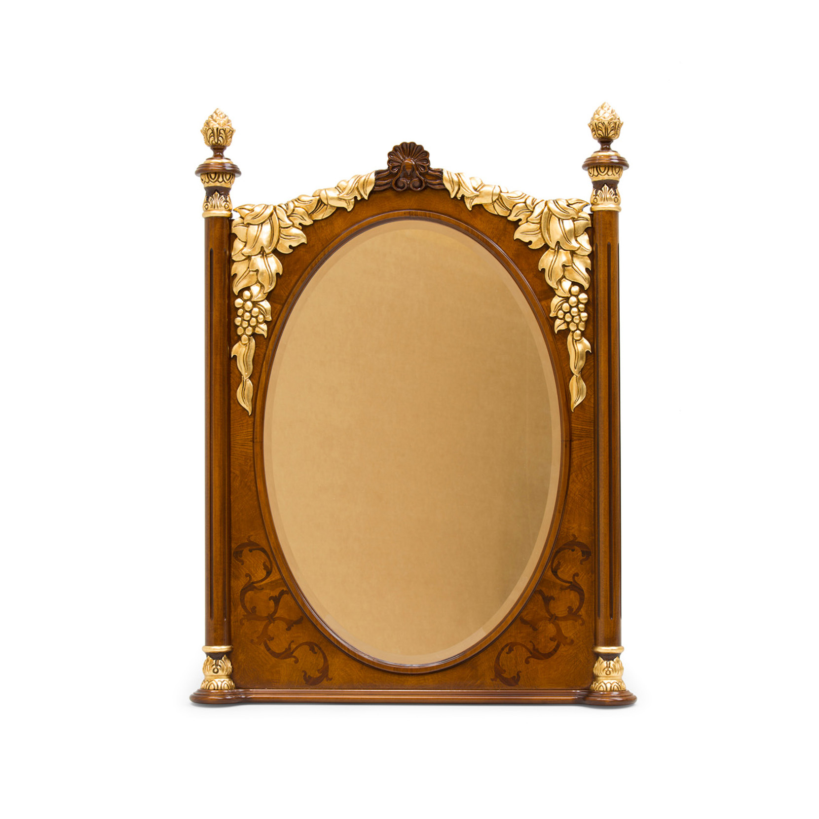 Mirror veneered in ash feather, rosewood and walnut burl , carved solid wood