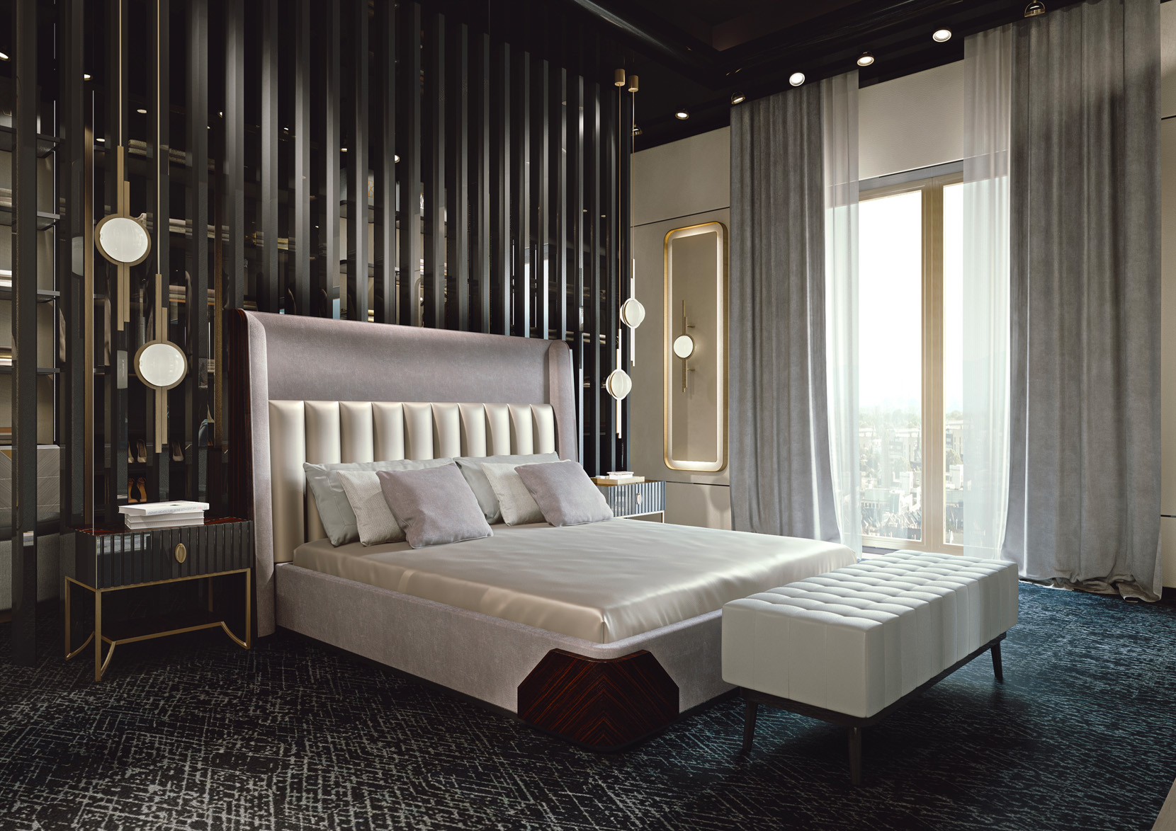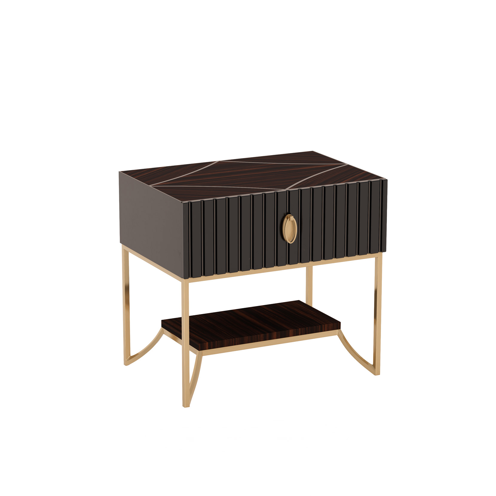 Nightstand with ebony veneer, matt lacquered parts, metal elements.