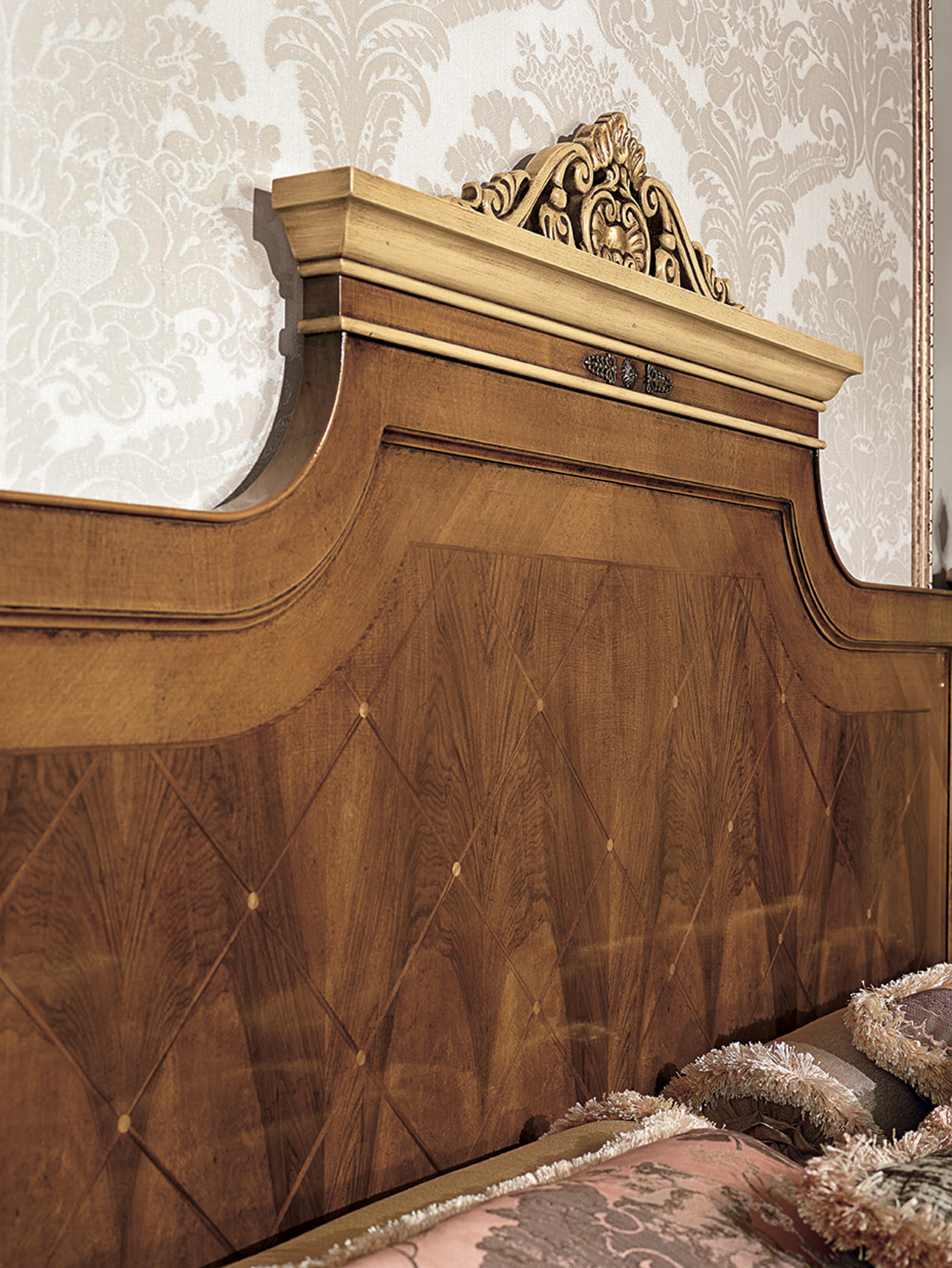 Bed veneered in walnut and walnut feather, for spring/mattress cm 200x200 (NOT INCLUDED)