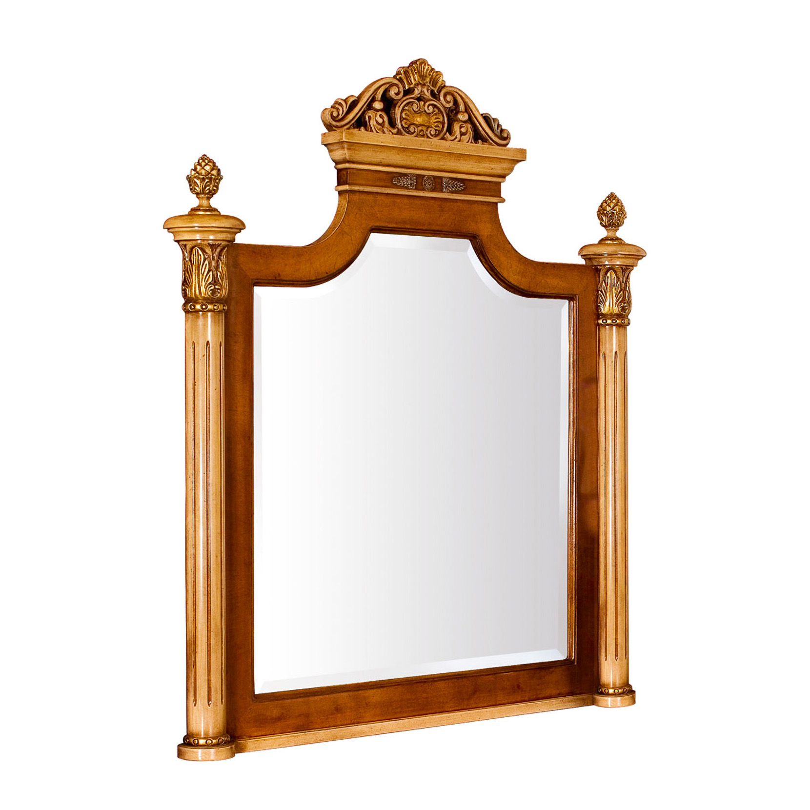 Mirror veneered in walnut , carved solid wood