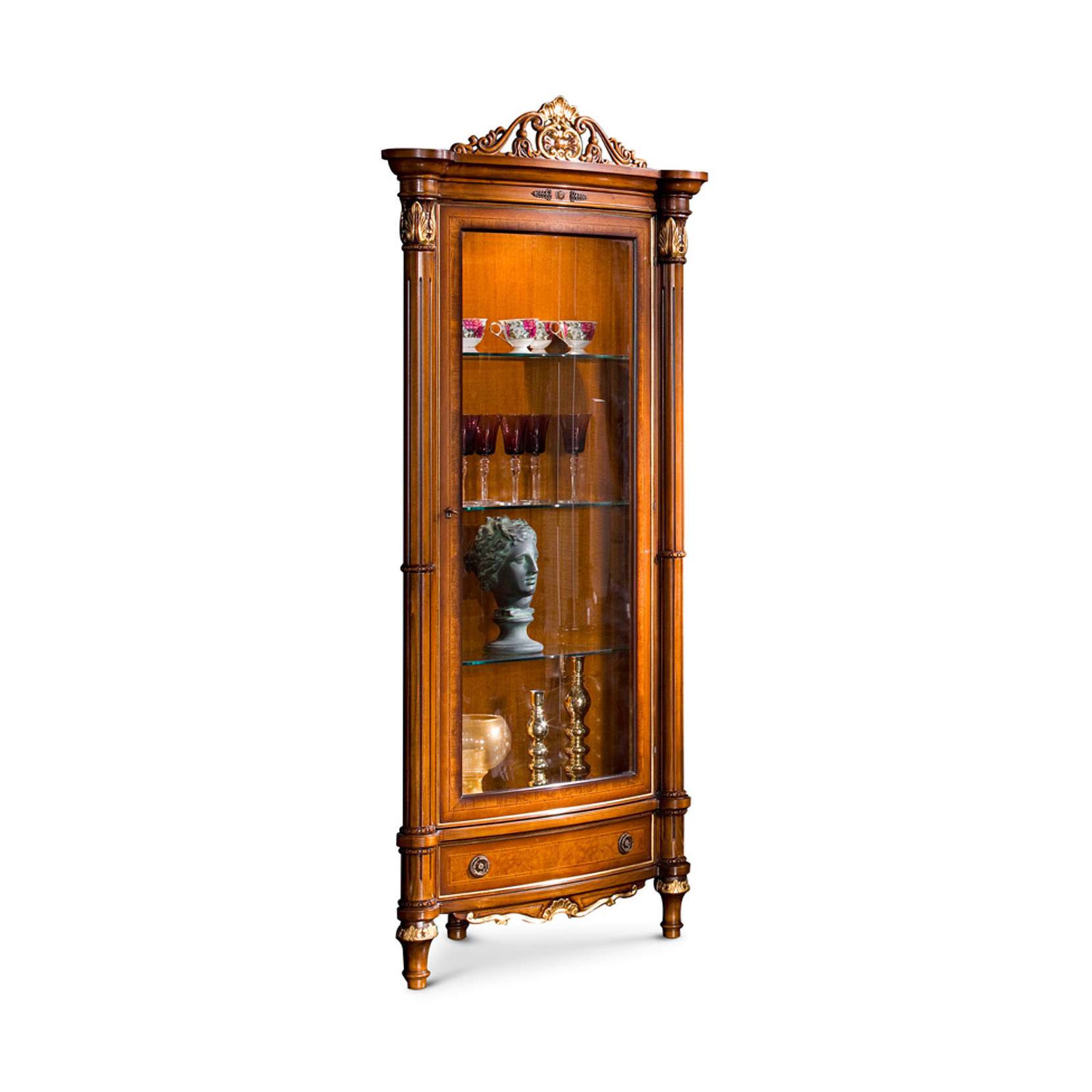 1-door cabinet corner shaped veneered in walnut and ash burl