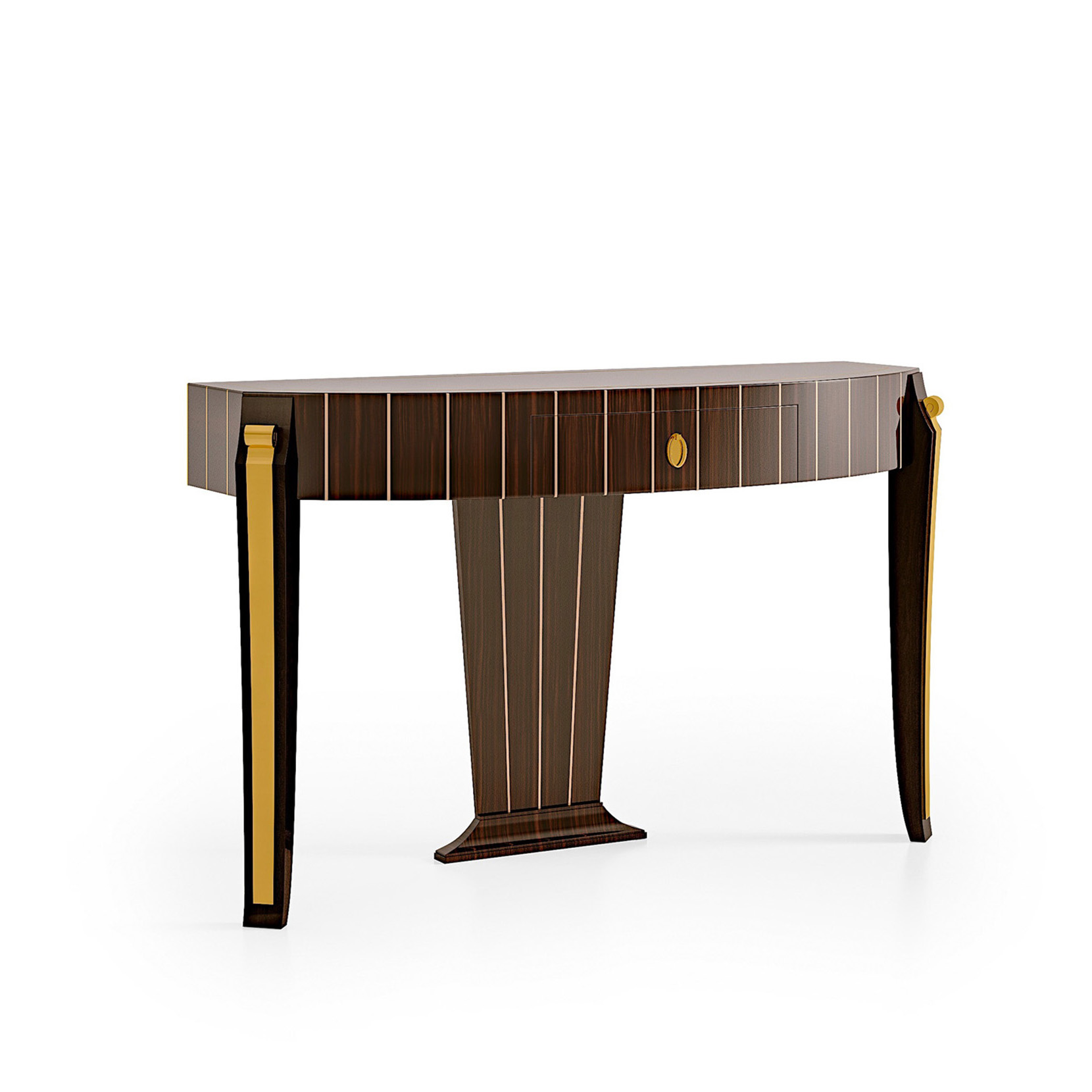 Console table veneered in Macassar ebony, brass, metal elements