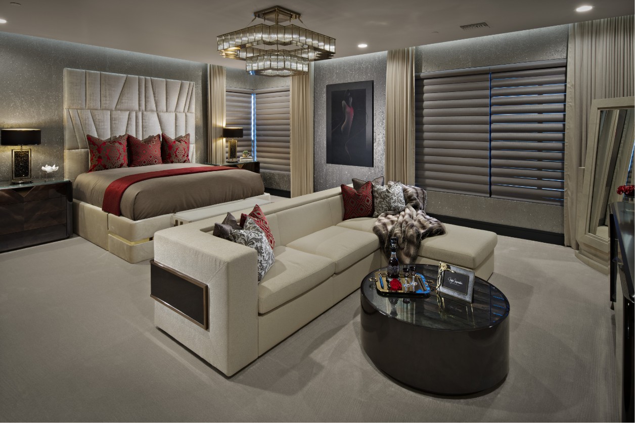 Located within an exclusive golf community in Las Vegas, this residence represents a sophisticated interpretation of contemporary luxury living. The master suite is conceived as a sanctuary of privacy, where the grandeur of the city meets an intimate, highly personalized domestic dimension.